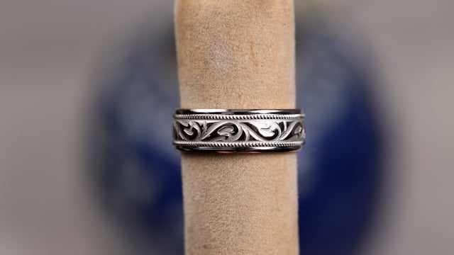 7mm Wide Wedding Band with Swirl Design and Millegrain #MBCL5224