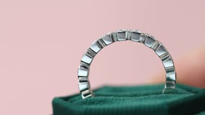 This stunning band is an exact replica of a 1930's original from the Art Déco era. Consisting of hexagonal frames connected at the midpoint and set with a diamond, this band has 1.16 carats of round brilliant cut lab grown diamonds F color VS clarity bead set with millegrained edges. 3.1mm wide and 2mm in height. Shown here with Lab Grown diamonds , and can be made with mined diamonds. This ring can be made to order in a wide range of sizes and in the metal of your choice. Please inquire.